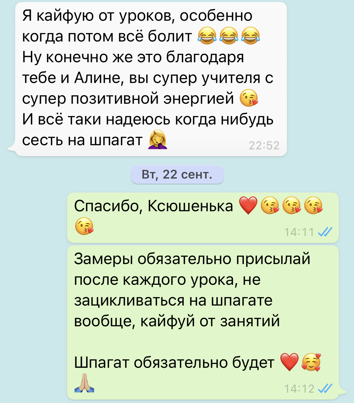 Сертифицированный тренер по программе Кристофера Харрисона. Тренер со стажем 10 лет, по направлениям: растяжка всего тела, школа шпагата, Antigravity, боди балет, подкачка, уроки на пуантах.
